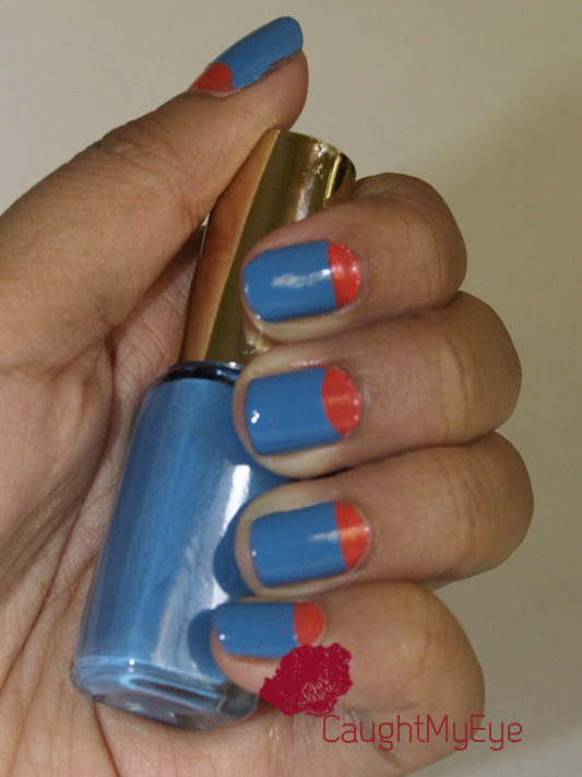 Anyway the colour selection is kind a boring, IMHO. But this is my first L'oreal nail polish and it is affordable! So i bought 2 of it. I think the pinkish coral one is from Miss Candy line and the blue one is from L'or Electric line? I really need to read magazine from now on.